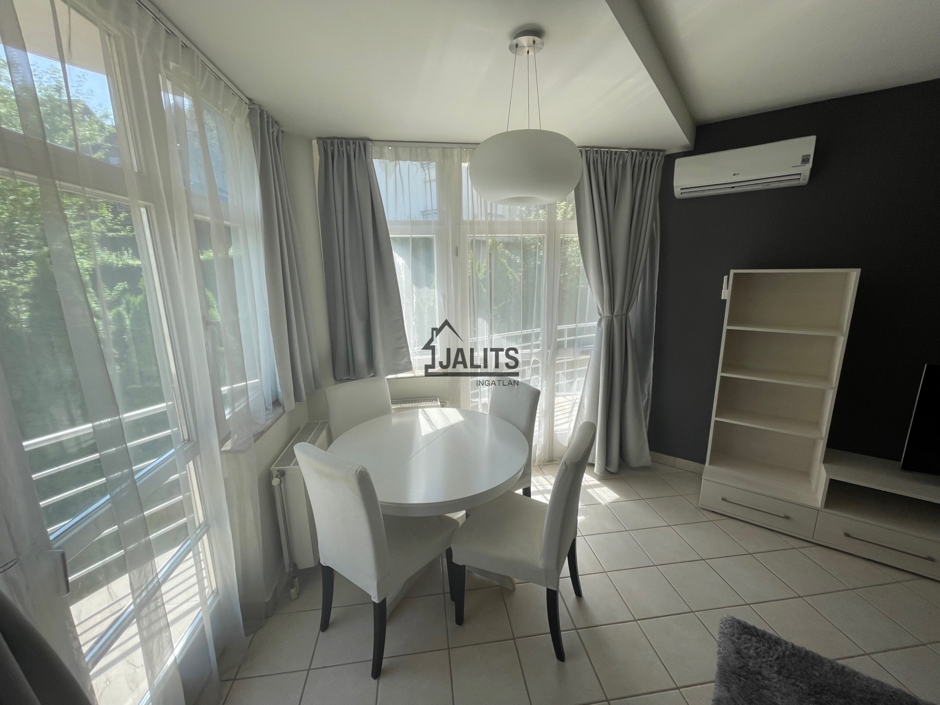 A lakás csendes, parkosított belső kertre néz, így központi elhelyezkedése ellenére is nyugodt, zöld környezetet biztosít.
